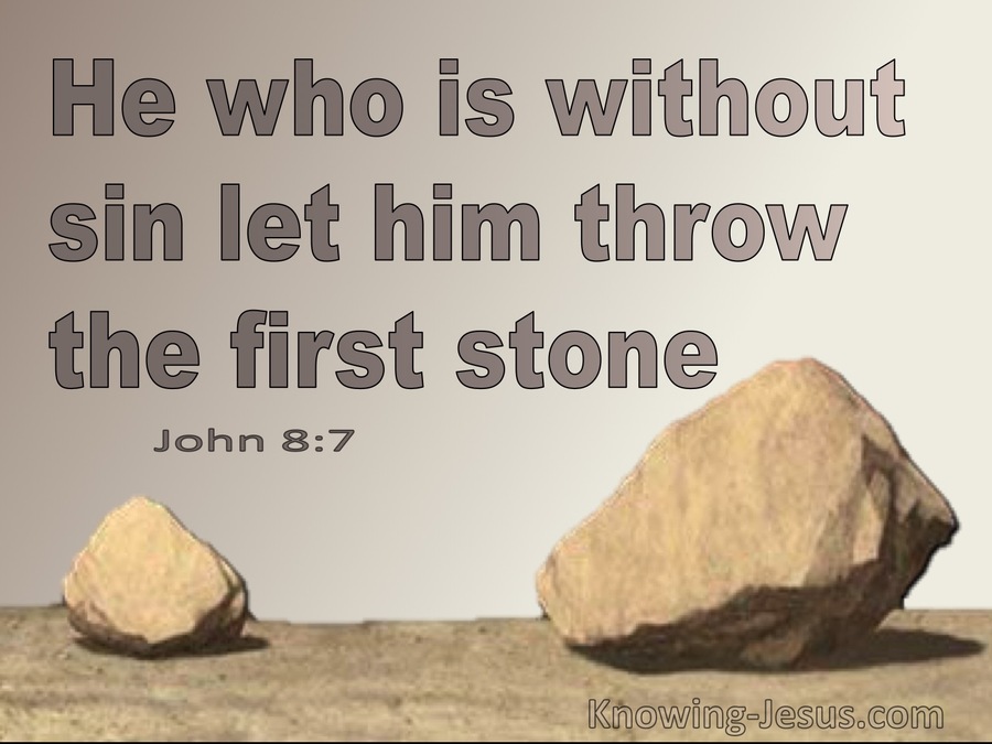 “你们中间谁是没有罪的,谁就可以先拿石头打她。”