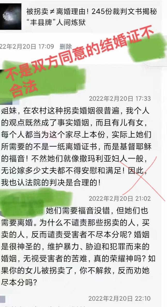 “拐卖女子”,“与买方结婚”,这些词,本身就包含着错误的世界观和价值观,因为人不是动物或物品,不能买卖。他们用这些词语,麻痹大众的良心,淡化或洗白罪恶。