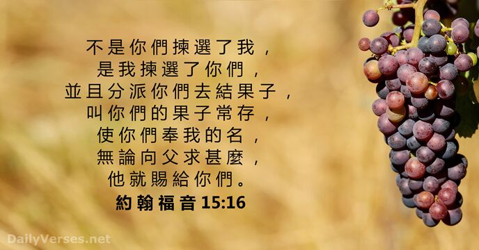 “不是你们拣选了我,是我拣选了你们,并且分派你们去结果子,叫你们的果子常存。”(约15:16)
