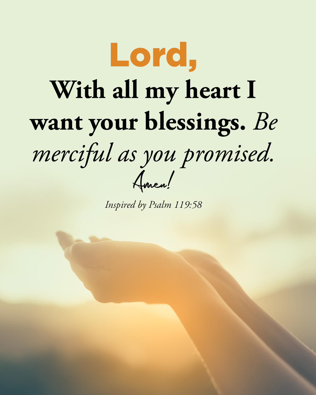 今日经文:“耶和华是我的福分。我曾说,我要遵守你的言语。58 我一心求过你的恩。愿你照你的话怜悯我。”(诗篇119:57–58)