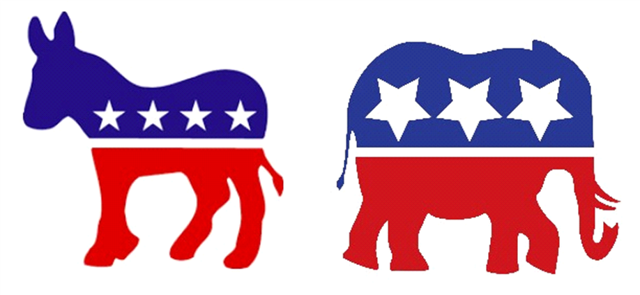 民主党的标志是驴子↑ 共和党的标志大象↑