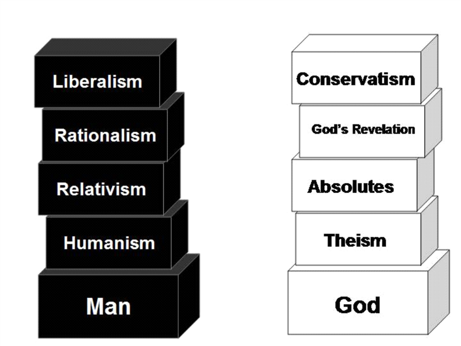 当然,这两个立场之间存在明显差异。从来没有一个政党完全符合上帝的律法,或者另一政党完全背离上帝的律法。不论如何,不同的意识形态根基决定了一个人是偏右还是偏左。
