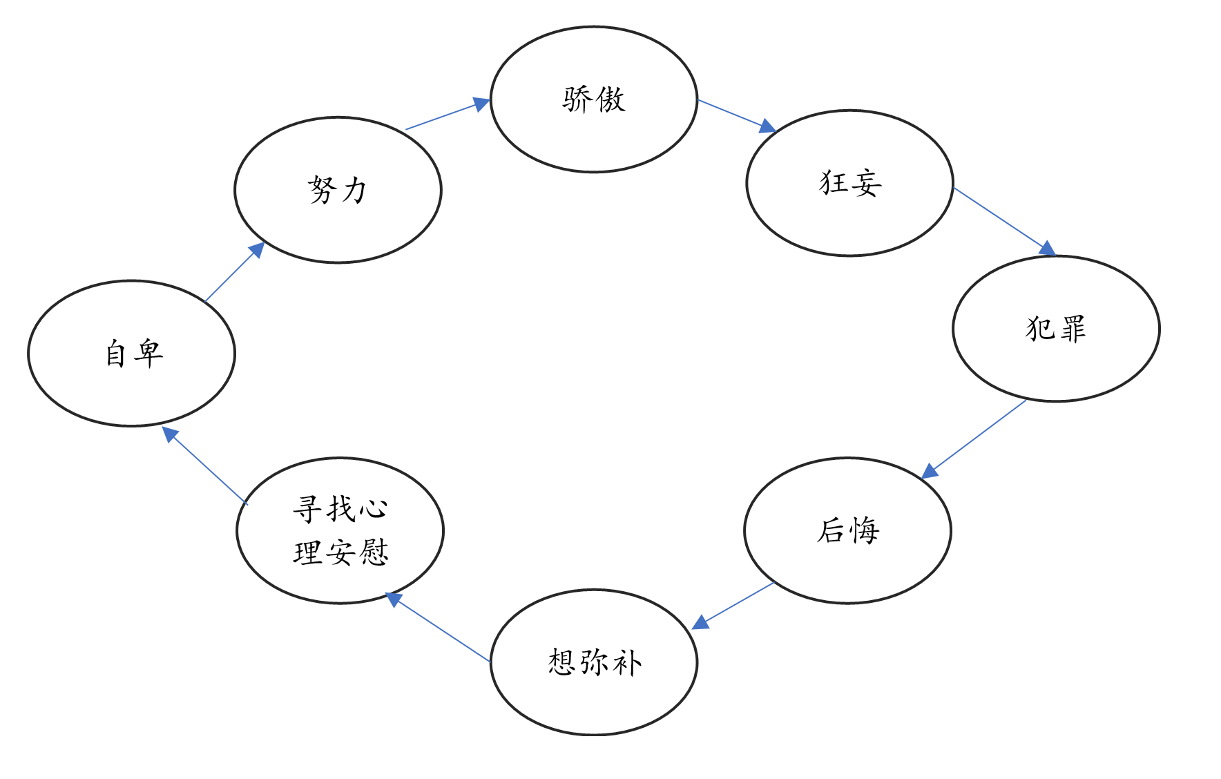 原生的家庭,成长的历程,教育的经历,工作的环境,让我成为原来的我,概括来说:强硬、骄傲、自大,追求成功、金钱、地位,放纵情欲、桀骜不驯。可这些是外在的表现,我却知道内因。因幼时的经历,用骄傲和狂妄掩盖自卑;因害怕失去,而格外想去抓住;因害怕受伤而主动伤害别人。一直不断地往复这样的循环,就像下面这张图一样,如同莫比乌斯环,循环往复,没有穷尽。