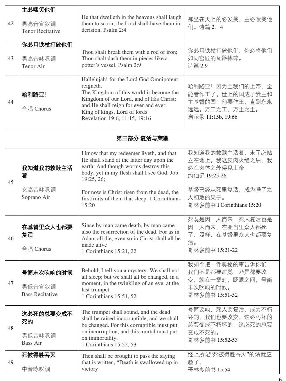 最后,附《弥赛亚》的剧本文字内容,其中的中英文歌词会帮助你更深的理解整部作品所表达的深刻内涵。