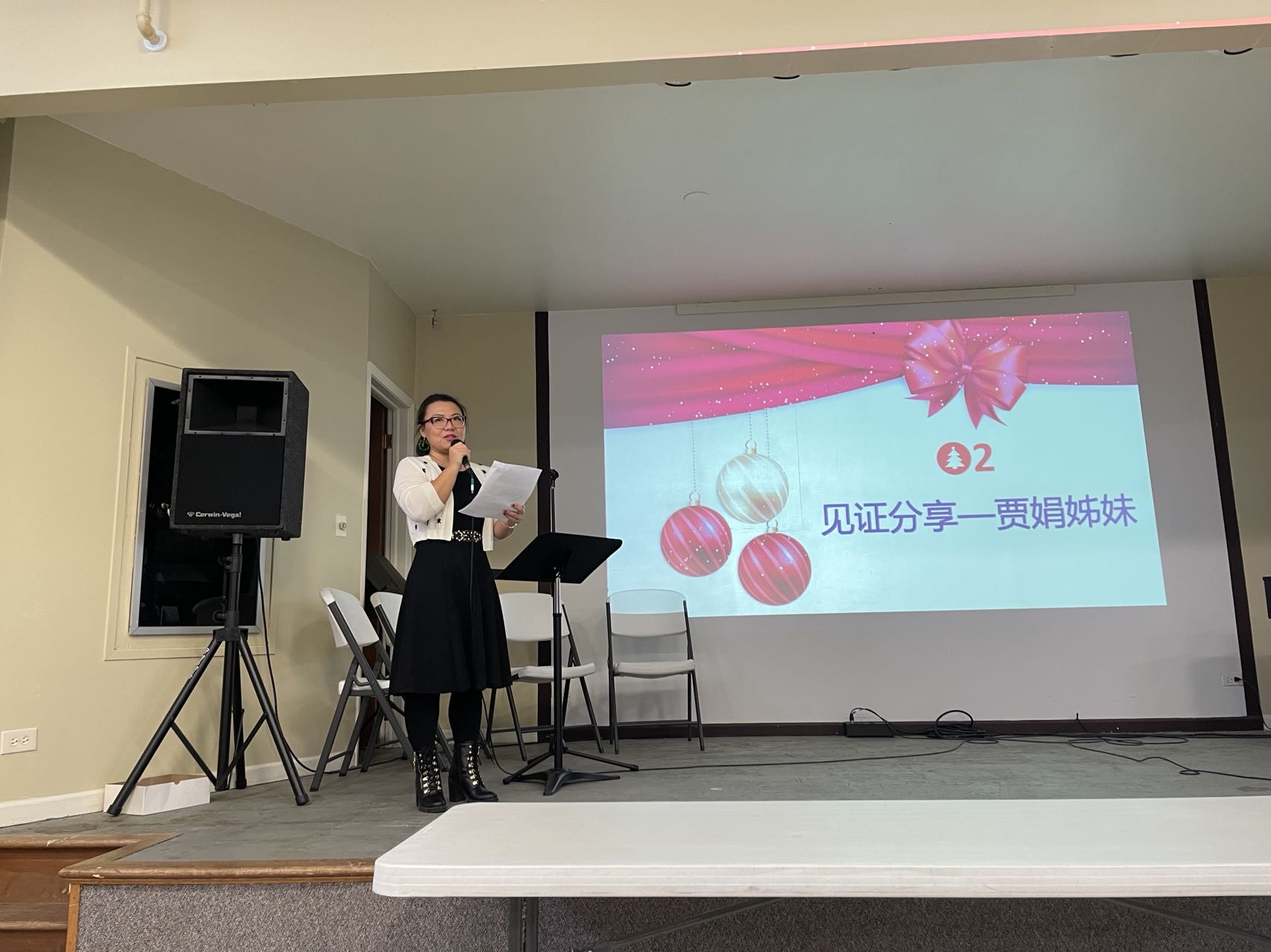 各位弟兄姐妹和朋友们,很高兴可以在圣诞的季节里分享我的见证。我大学一毕业就和Nick结婚来到美国,并且很快信主。信主这十二年,我一直觉得教会是我的第二个家,弟兄姐妹们见证了我们夫妻的成长、事业的发展和孩子们的诞生。所以今天的这个见证不是我一个人的故事,而是我们全家人的感恩。