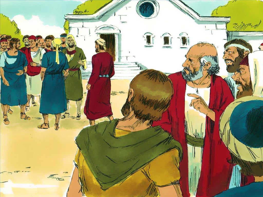 “从雅各布那里来的人未到以先,他和外邦人一同吃饭,及至他们来到,他因怕奉割礼的人,就退去与外邦人隔开了。其余的犹太人也都随着他装假,甚至连巴拿巴也随伙装假。但我一看见他们行得不正,与福音的真理不合,就在众人面前对矶法说:‘你既是犹太人,若随外邦人行事,不随犹太人行事,怎么还勉强外邦人随犹太人呢?’”(加拉太书 2:12–14)