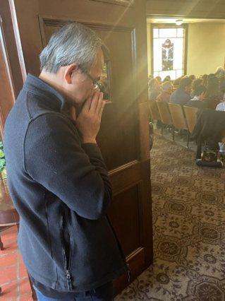 Chapel外俯伏祷告的年轻人