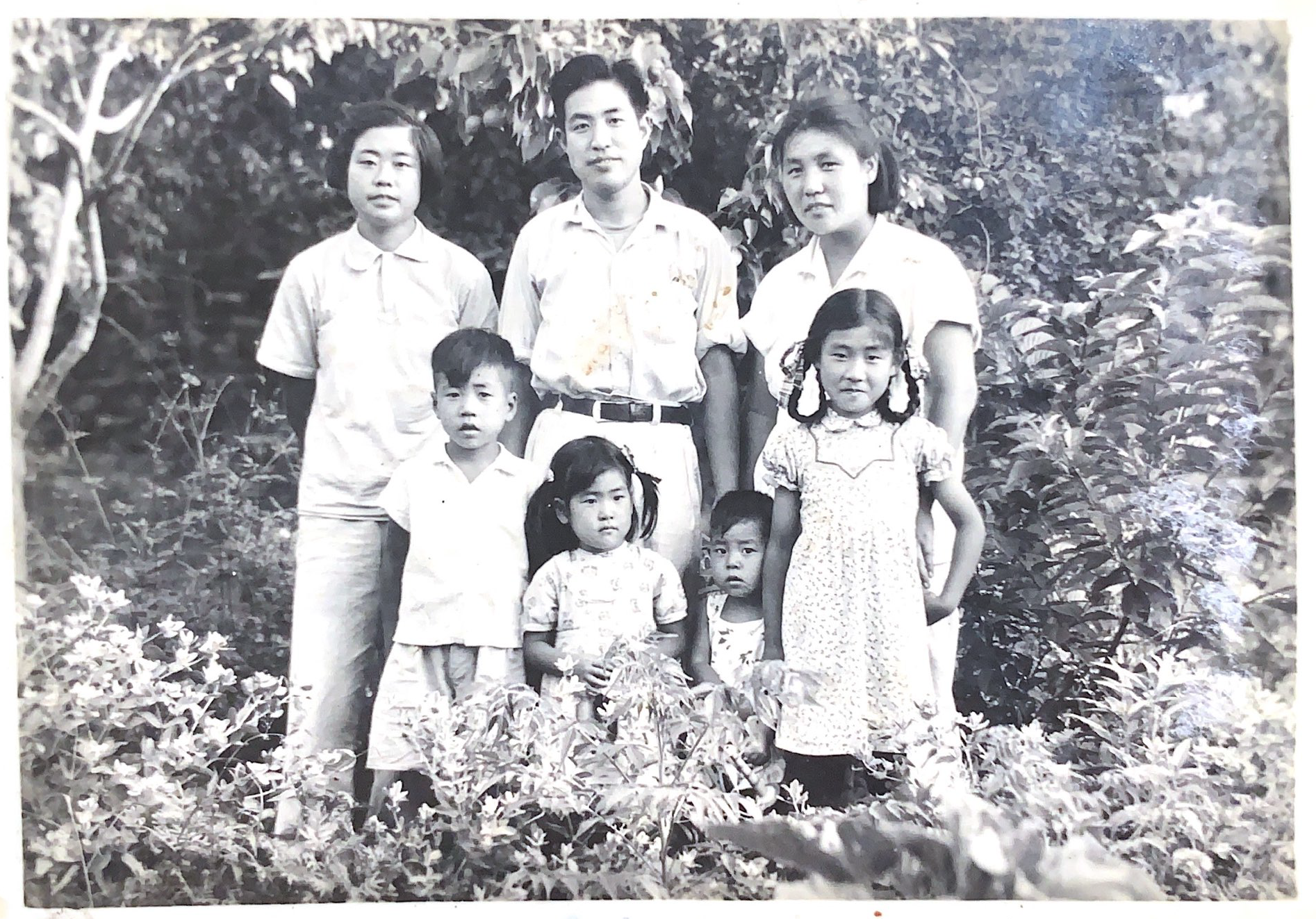 作者(前左1)幼年时与全家摄于宣教楼花园,后左1为四姑