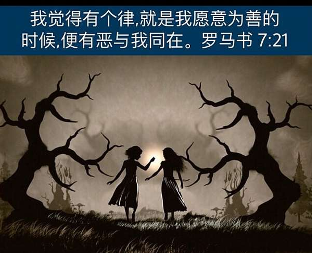 但事与愿违。我发现做善事并不能使自己更有信心,反而让我陷入更大的争战。“因为我所作的,我自己不明白。我所愿意的,我并不作。我所恨恶的,我倒去作。”(罗马书7:15)真的是“立志为善由得我,只是行出来由不得我” (18)。内心深处的愧疚感挥之不去,因为知道自己有很多的软弱败坏,胜不过情欲及世界对自己的捆绑。我处在这种二律交战之中,靠着自己的力量挣扎,完全不明白“靠着我们的主耶稣基督就能脱离了”的道理。