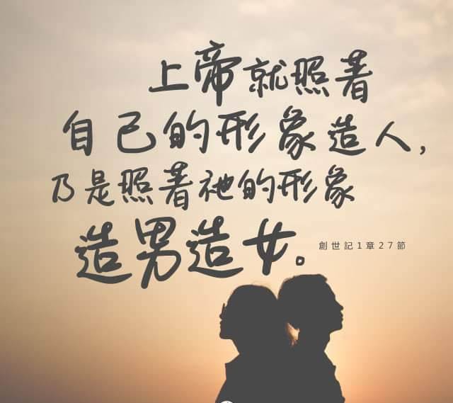 “神就照着自己的形象造人,乃是照着祂的形象造男造女。”(创世记1:27)