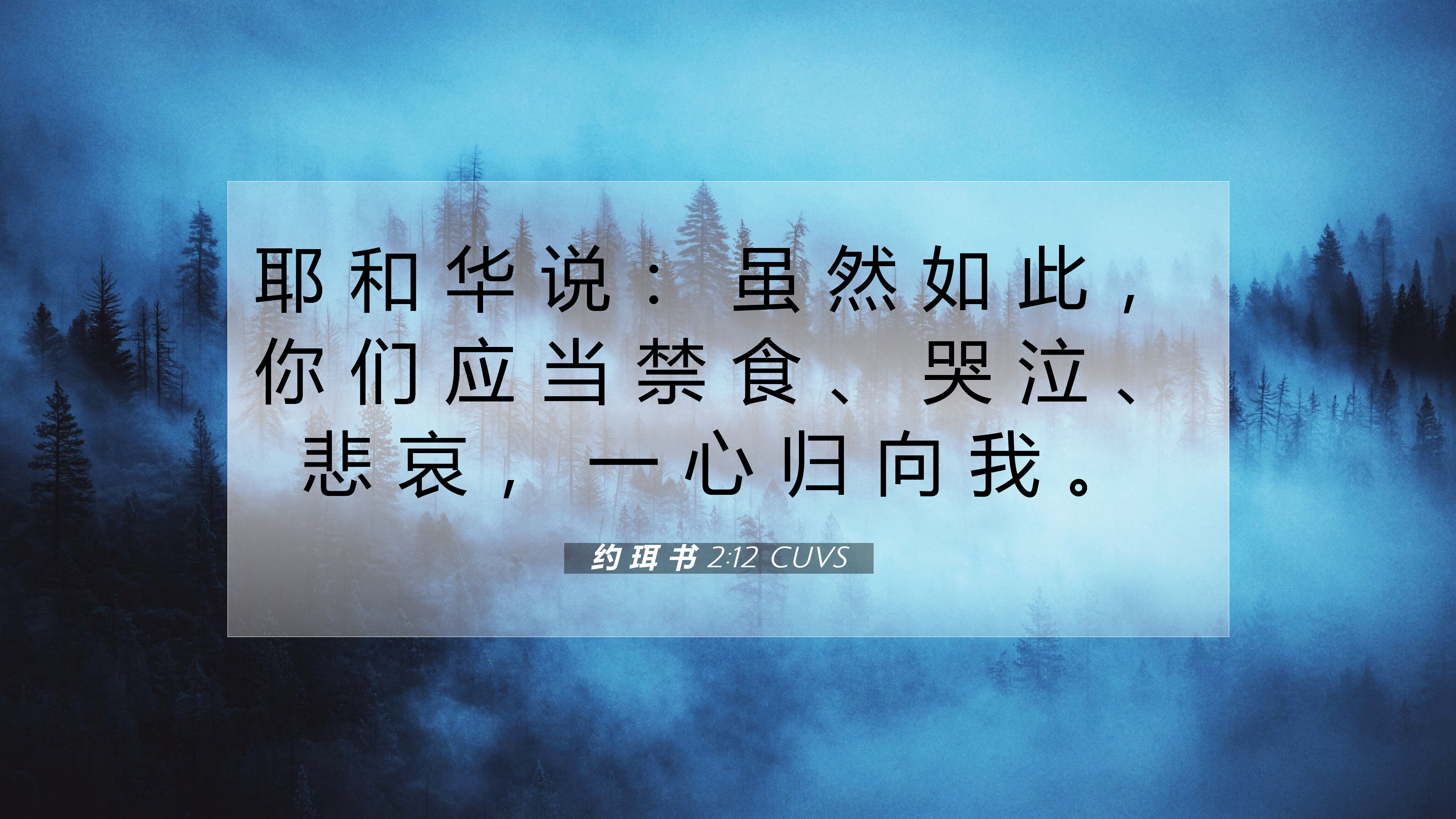 —— 愿我们照着经上所说“分定禁食的日子,宣告严肃会;聚集众民,使会众自洁……”