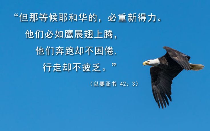 “27雅各啊,你为何说,我的道路向耶和华隐藏?以色列啊,你为何言,我的冤屈神并不查问? 28 你岂不曾知道吗?你岂不曾听见吗?永在的神耶和华,创造地极的主,并不疲乏,也不困倦;祂的智慧无法测度。 29 疲乏的,祂赐能力;软弱的,祂力量。 30 就是少年人也要疲乏困倦;强壮的也必全然跌倒。 31 但那等候耶和华的必从新得力。他们必如鹰展翅上腾;他们奔跑却不困倦,行走却不疲乏。” (赛40:27–31)