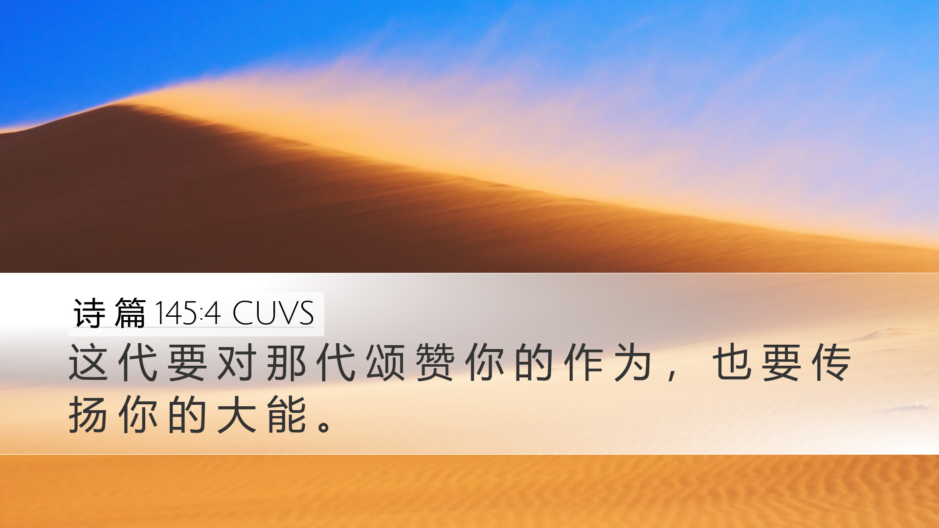 大卫在诗篇145:4说,“这代要对那代颂赞你的作为,也要传扬你的大能。”