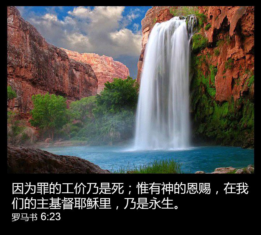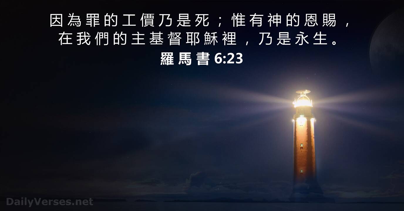 罗马书6:23,“罪的功价乃是死,唯有神的恩赐,在我们的主基督耶稣里乃是永生。”