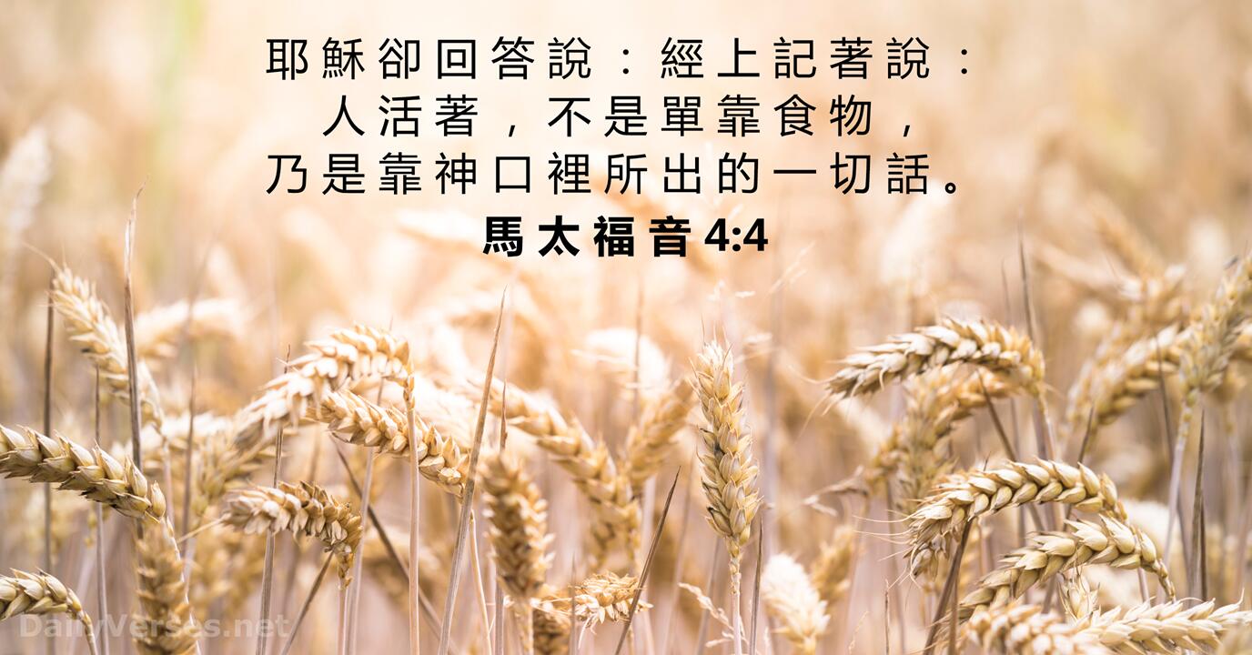 马太福音4:4,“人活着不是单靠食物,乃是靠神口里所说的一切话。”