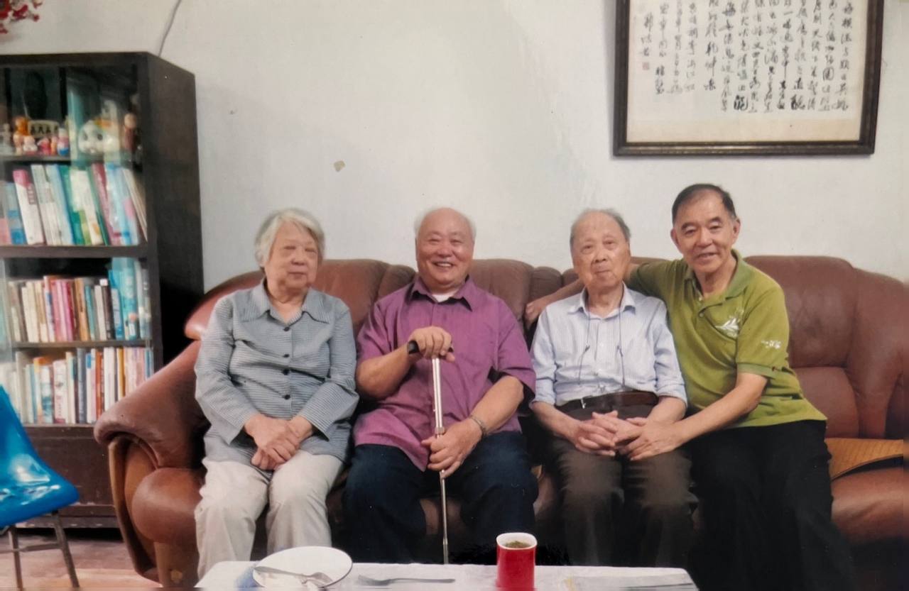 左起:张桂炎弟兄、王天铎先生、王忠孝牧师、殷蔚芷姊妹(天铎的妻子)