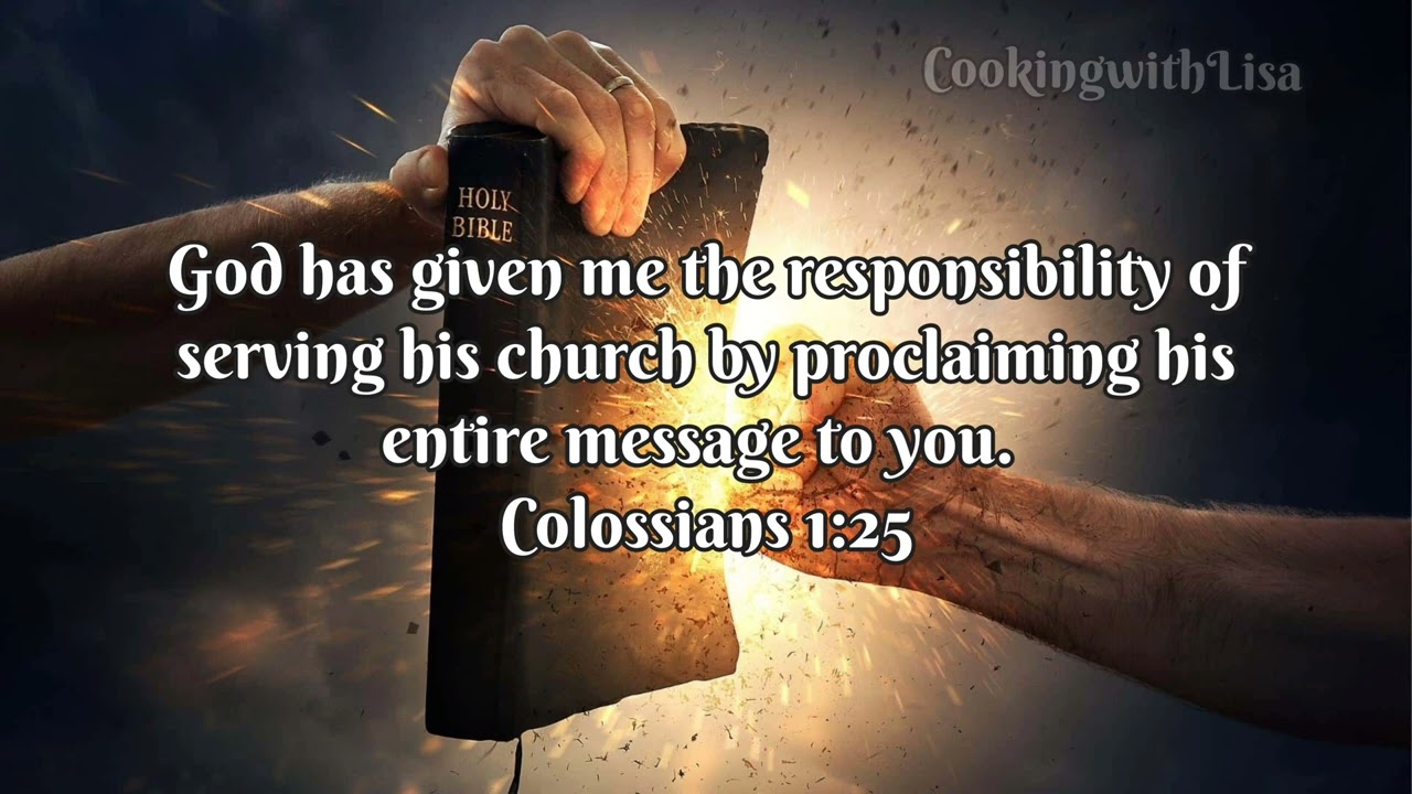 “我照神为你们所赐我的职分作了教会的执事,要把神的道理传得全备,这道理就是历世历代所隐藏的奥秘,但如今向祂的圣徒显明了。神愿意叫他们知道,这奥秘在外邦人中有何等丰盛的荣耀,就是基督在你们心里成了有荣耀的盼望。我们传扬祂,是用诸般的智慧劝戒各人、教导各人,要把各人在基督里完完全全地引到神面前。我也为此劳苦,照着祂在我里面运用的大能尽心竭力。”(歌罗西书 1:25–29)