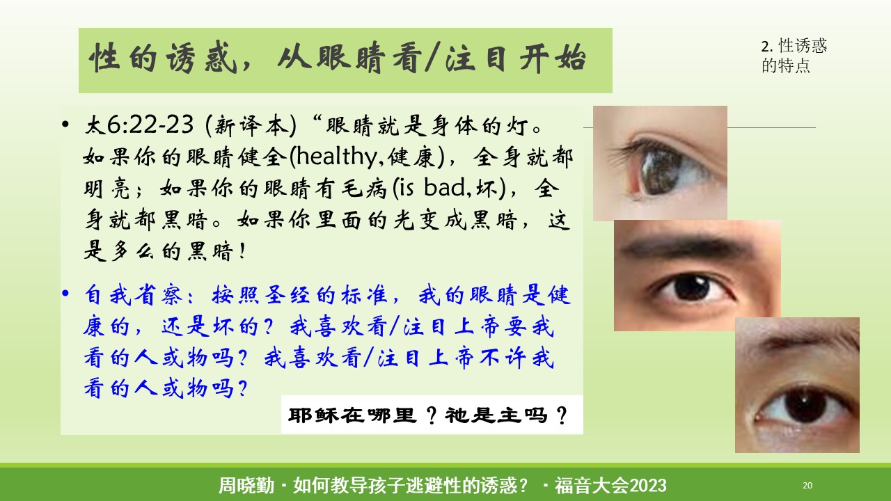 —— 父母当保护孩子免受网络色情的影响:使用网络内容过滤工具,以圣经为依据积极讨论引导孩子逃避试探;用取代法尽量少上网…