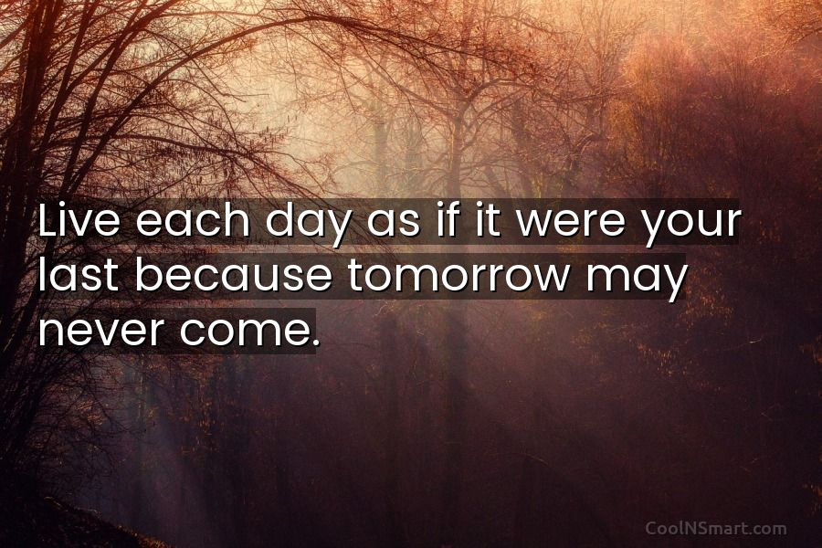 经上还清清楚楚地告诉我们:“其实明天如何,你们还不知道。你们的生命是什么呢?你们原来是一片云雾,出现少时就不见了。”(雅各书4:14)这不正是告诉我们:今天可能就是我们在世的最后一天了,只是我们自己还不知道而已吗?