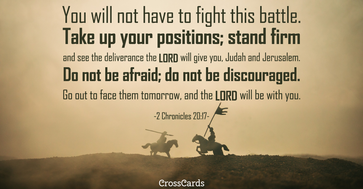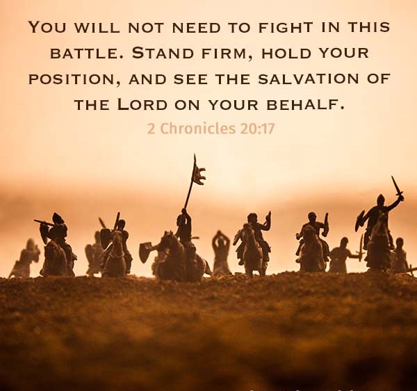 —— “不要因这大军恐惧惊惶,因为胜败不在乎你们,乃在乎神。这次你们不要争战,要摆阵站着,看耶和华为你们施行拯救!”