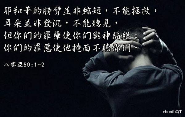 今日经文:但你们的罪孽使你们与神隔绝,你们的罪恶使祂掩面不听你们。(以赛亚书59:2)