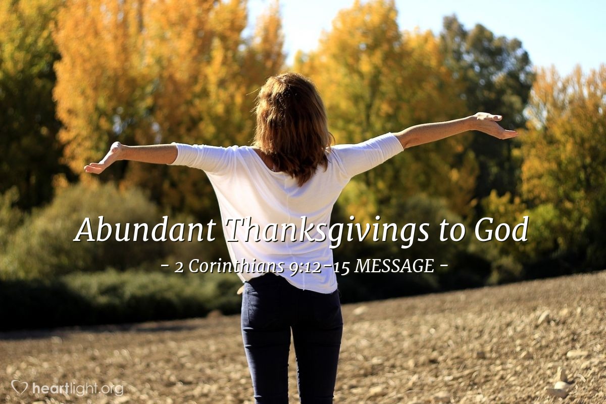 11叫你们凡事富足,可以多多施舍,就借着我们使感谢归于神。12因为办这供给的事,不但补圣徒的缺乏,而且叫许多人越发感谢神。13他们从这供给的事上得了凭据,知道你们承认基督,顺服祂的福音,多多地捐钱给他们和众人,便将荣耀归与神。