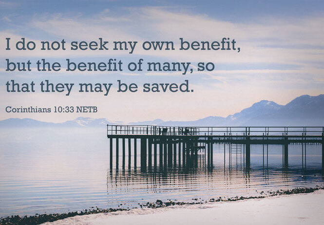 哥林多前书10:33就好像我凡事都叫众人喜欢,不求自己的益处,只求众人的益处,叫他们得救。11:1你们该效法我,像我效法基督一样。