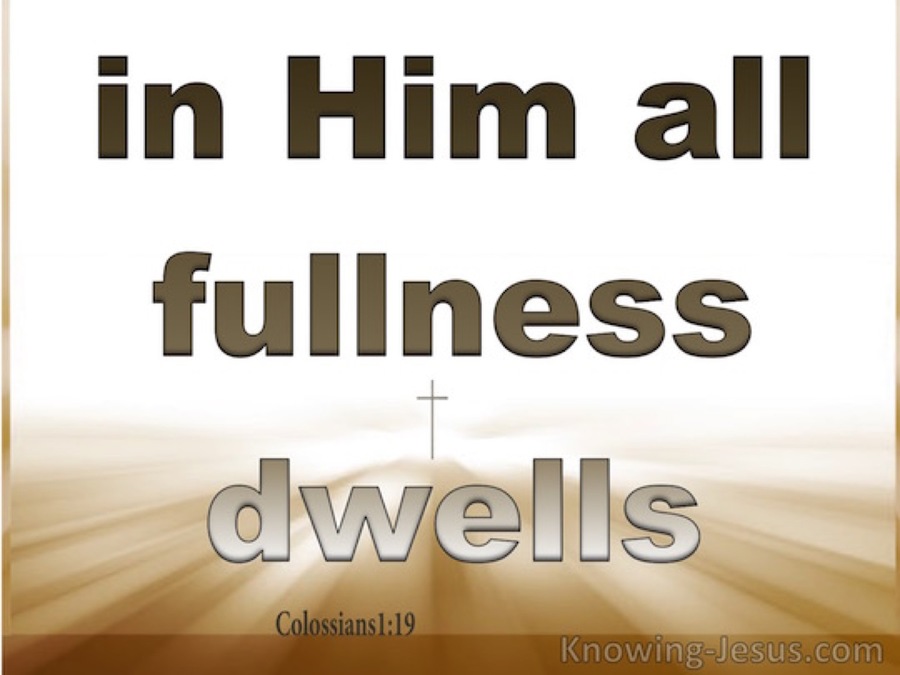 “(父)喜欢”,也就是父认为是好的,满意,喜悦。 原文没有“父”字,但照上下文和作者的神学思路看,毫无疑问是父神喜悦“叫一切的丰盛”,居住在祂的爱子里面。“一切的丰盛”,即2:9的“神本性一切的丰盛”,特指神一切权能与属性的整体,都居住在基督里(Lightfoot,引自活泉卷七433页)。“居住”:无始无终地安住。