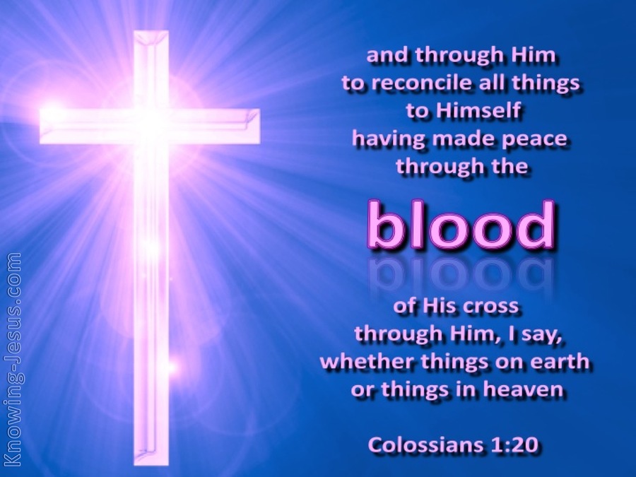 20既然借着祂在十字架上所流的血,成就了和平,便借着祂叫万有,无论是地上的,天上的,都与自己和好了。