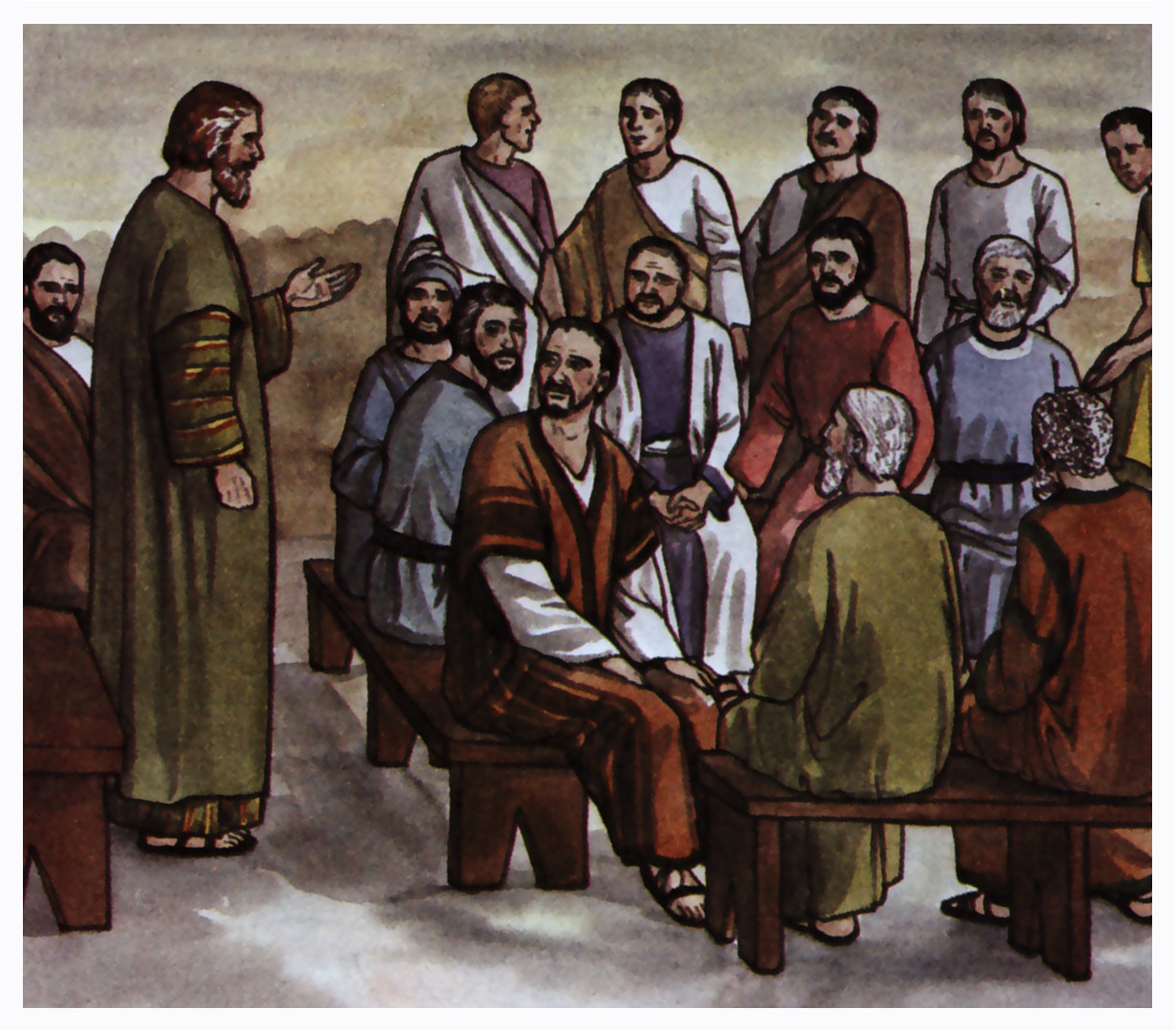 使徒长老聚集商议,经过很长时间的询问、辩论、质疑甚至争论之后,彼得站起来说话。