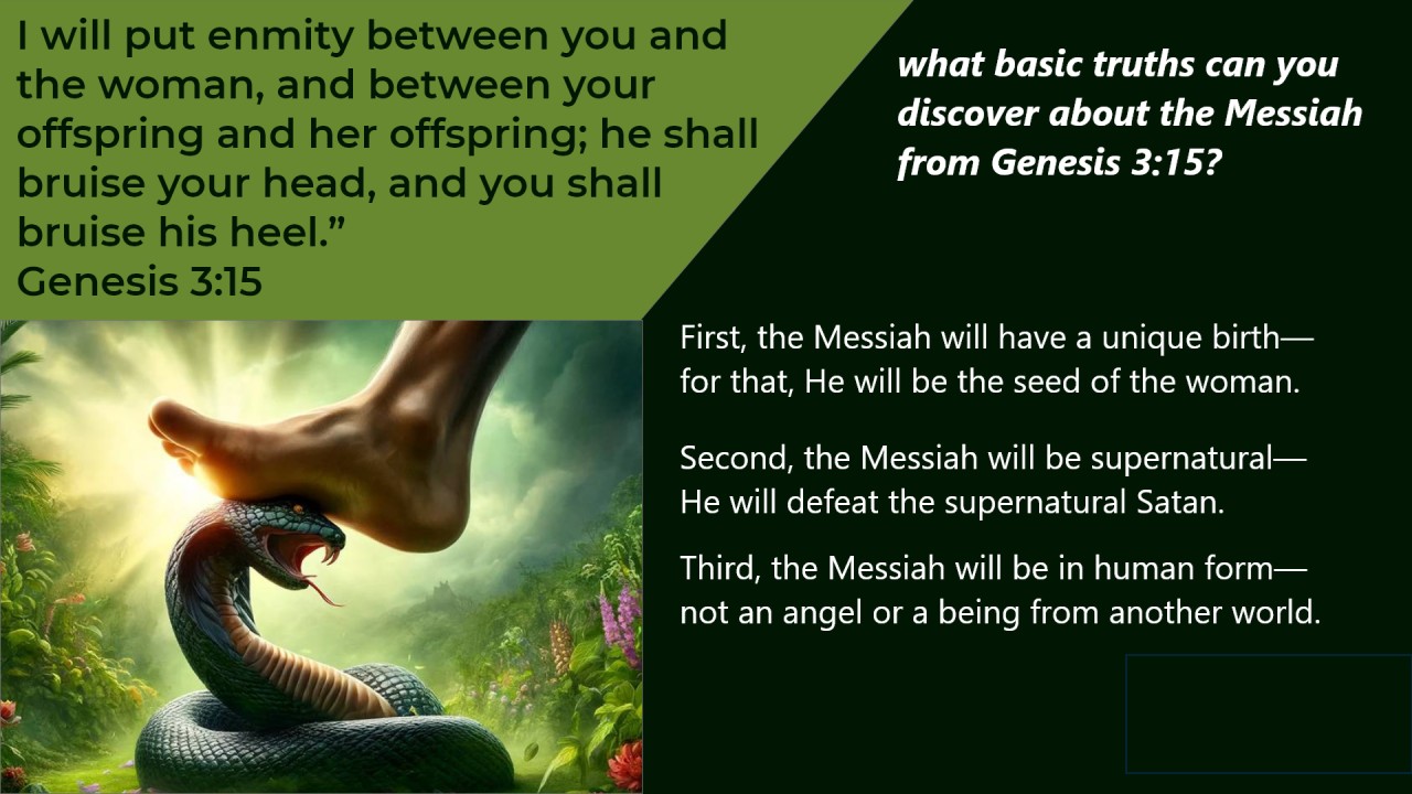 今日经文:“我又要叫你和女人彼此为仇;你的后裔和女人的后裔也彼此为仇。女人的后裔要伤你的头,你要伤祂的脚跟。”(创世记3:15)