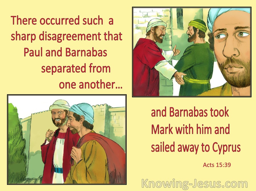 保罗和巴拿巴这两个重要宣教领袖因为马可产生了很大的意见分歧。