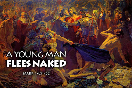 根据马可福音第十四章记载,耶稣在客西马尼园被捕时,“有一个少年人,赤身披着一块麻布,跟随耶稣,众人就捉拿他。他却丢了麻布,赤身逃走了。”(可14:51–52)许多人认为,这个少年人就是马可。