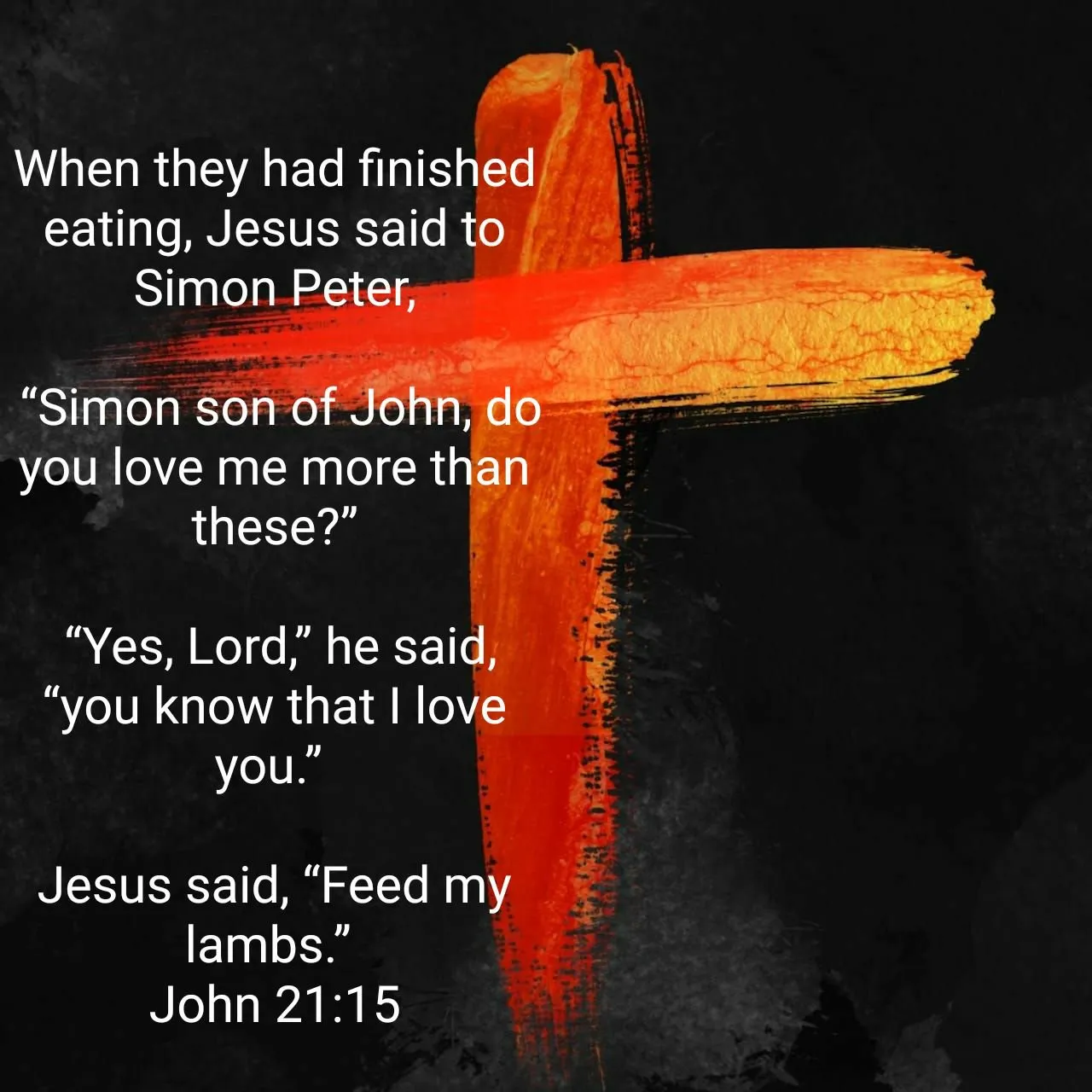 “耶稣第二次又对他说:约翰的儿子西门,你爱我们吗?”“第三次对他说:约翰的儿子西门,你爱我吗?”圣经告诉我们:“彼得因为耶稣第三次对他说你爱我吗,就忧愁”(参约21:15–17)他爱耶稣,却好像被主质疑一样,有点不好受。