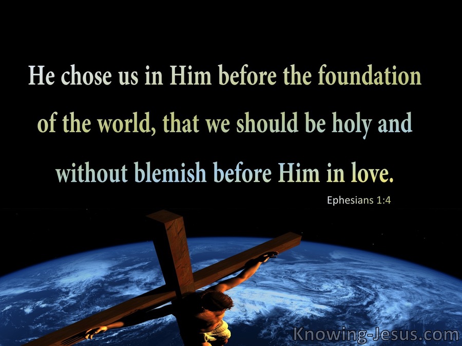 1:4节说到“拣选”:“神从创立世界以前,在基督里拣选了我们。”“拣选”(ἐξελέξατο , ἐκλέγομαι或ἐκλέγω的过去式中间态陈述语气)一词由介词ἐκ(从…出来)和动词λέγω(说话,呼喊)构成,本意是把人呼喊出来。动词的中间态表明,拣选的工作,是神自己的亲力亲为,好像祂对着“我们”说:你们出来,到我这里来!这节经文清楚地证明:“拣选的教义是神的启示,不是人的推论”(参斯托得《以弗所书注释》,39–40页)。