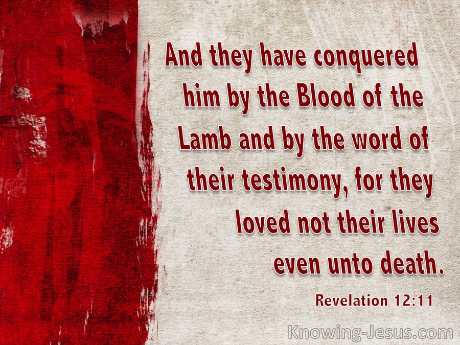 “弟兄胜过它,是因羔羊的血和自己所见证的道。他们虽至于死,也不爱惜性命。”(启示录12:11)