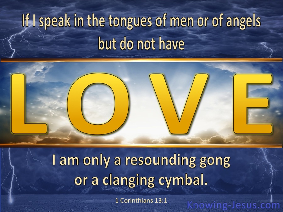 虽然人可能因你的口才,渊博的知识,行异能而崇拜你,因你知道各样奥秘而被吸引跟从你。但若没有爱,什么都不是。这是强调爱比一切的恩赐和能力都更为重要。保罗讲到这里,觉得还不够强调爱的必须和重要性。