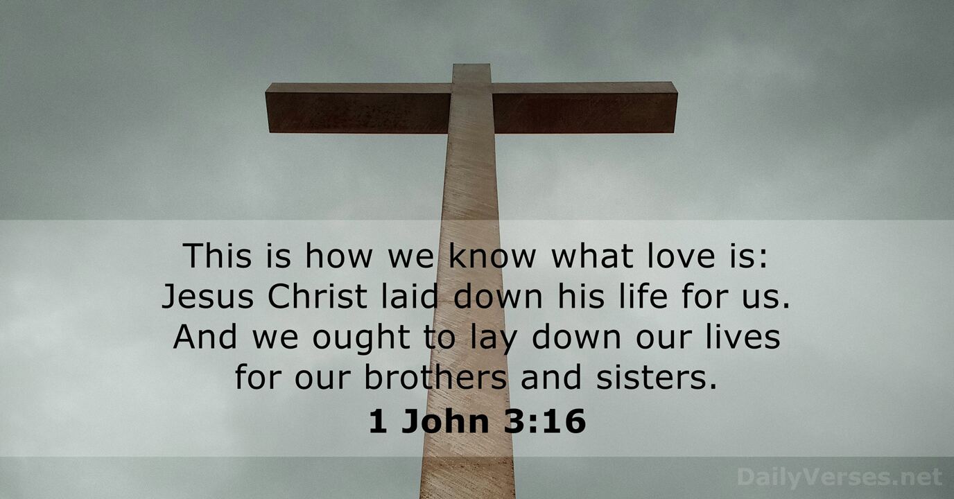 约翰一书3:16主为我们舍命,我们从此就知道何为爱,我们也当为弟兄舍命。