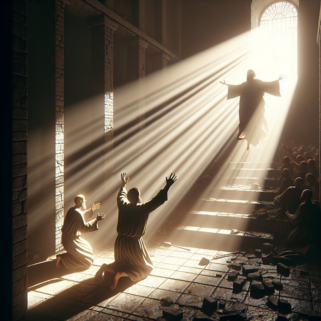 可以想像,不久保罗、西拉开始祷告、唱诗、赞美。禁卒一开始也不敢大意,他一定是听到了保罗、西拉的祷告和唱诗。