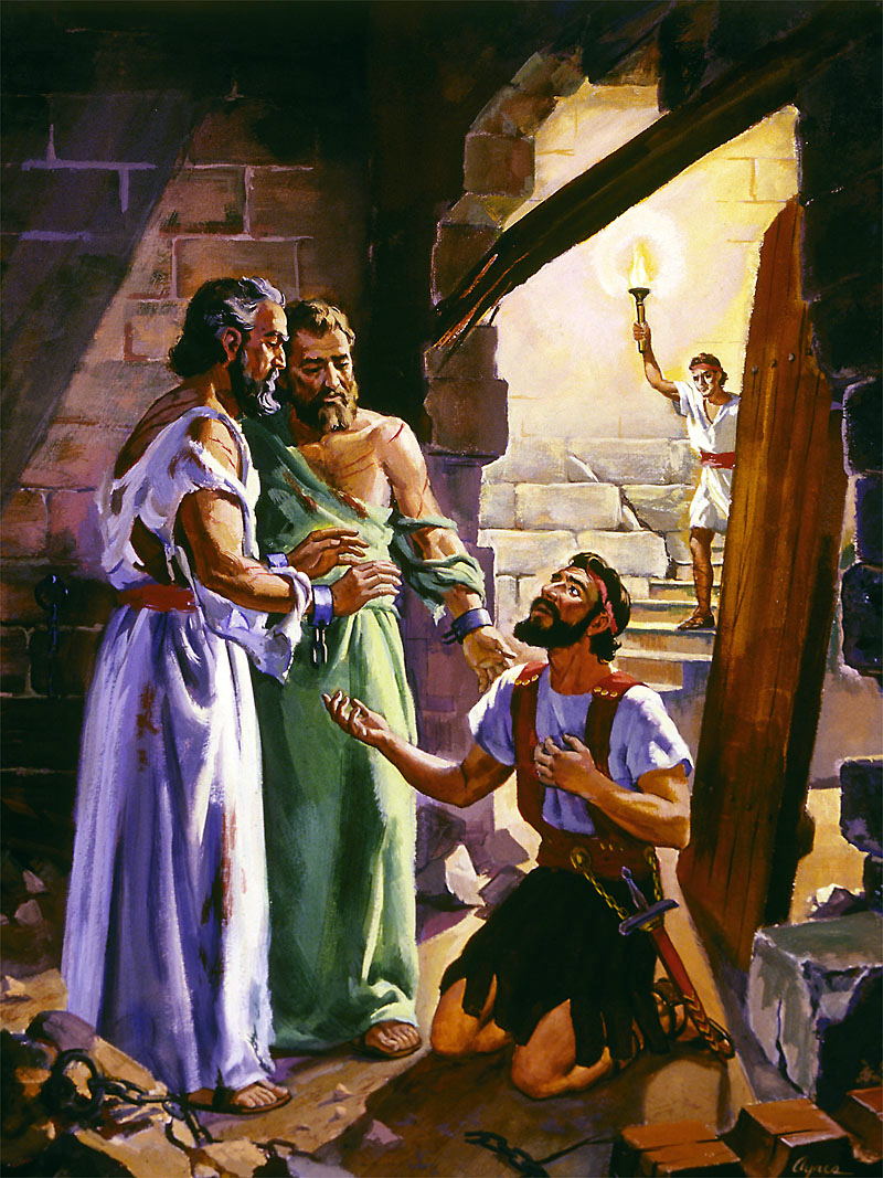 “禁卒叫人拿灯来,就跳进去,战战兢兢地俯伏在保罗西拉面前。”(徒16:29)