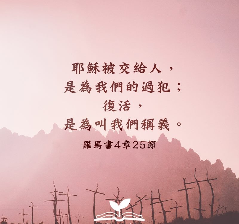 算他为义是讲亚伯拉罕因信神,神称他为义人。这不仅是讲亚伯拉罕,也是对每一个我们将来得算为义的人写的。得算为义的人就是信神使耶稣从死里复活的人。所以因信称义的人,就要信耶稣从死里复活。耶稣的死是为我们的罪,担当我们罪的惩罚;而耶稣的复活是为叫我们称义。称义就是我们因信基督神赦免我们的罪,不再定我们的罪,神赐给我们基督里的义,看我们是个义人,并且使我们蒙恩得救,从死里救活过来,赐给我们一个新的生命,是永生的生命。所以罗马书里面说这是称义得生命。因为基督复活,我们才有新的生命,才有永生的生命。