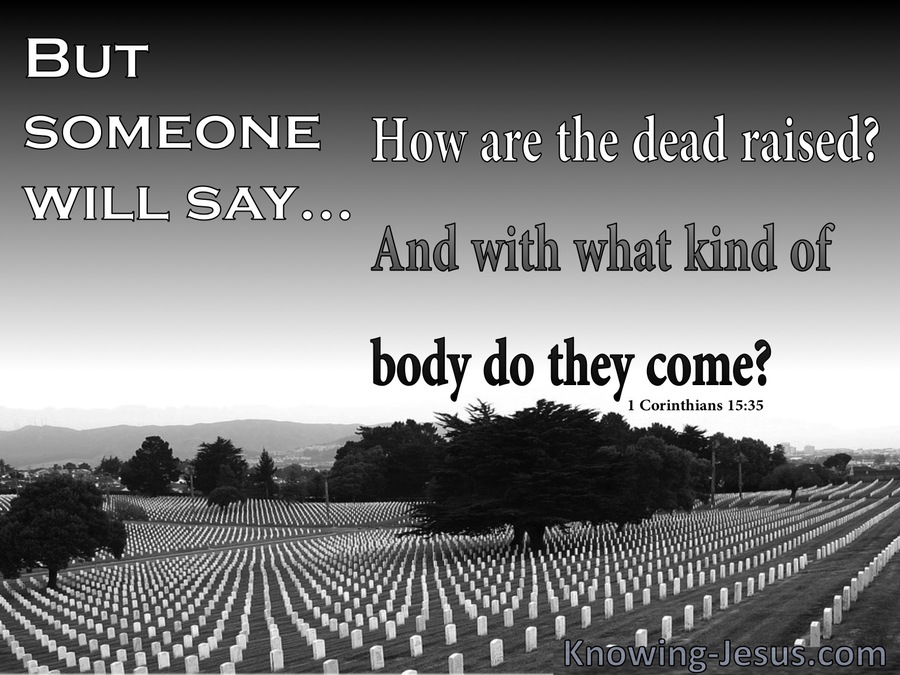 哥林多前书15:35 或有人问:“死人怎样复活,带着什么身体来呢?”