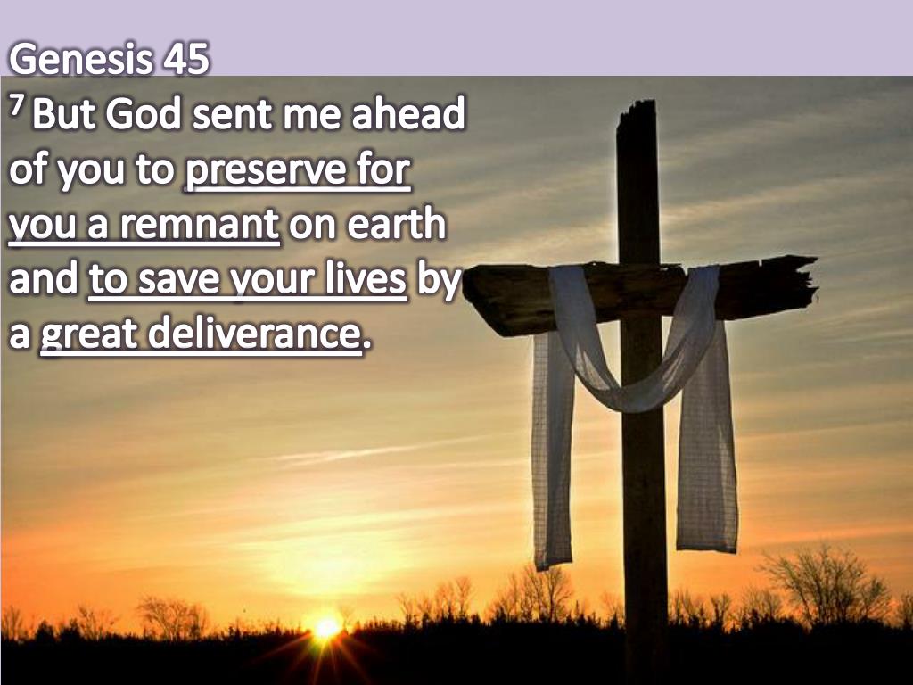 “现在,不要因为把我卖到这里自忧自恨。这是神差我在你们以先来,为要保全生命。现在这地的饥荒已经二年了,还有五年不能耕种,不能收成。神差我在你们以先来,为要给你们存留余种在世上,又要大施拯救,保全你们的生命。这样看来,差我到这里来的不是你们,乃是神。祂又使我如法老的父,作他全家的主,并埃及全地的宰相。”