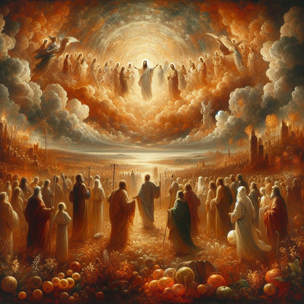 初期教会几个世纪的教父们喜欢把诗篇第24篇与此联系起来。当耶稣来到耶和华的山顶时,陪伴祂的天使们大声呼喊:“众城门哪,你们要抬起头来.…..那荣耀的王将要进来!”天上的天使们就像唱诗班一样回喊:“那荣耀的王是谁呢?”给出的回答是:“强而有力的主,在战场上大有能力的主!万军之主,祂是荣耀的王!” (诗24:7–10,新译本)。于是天堂的门打开了,征服了罪恶、死亡和撒但的耶稣来到了祂的加冕礼上。这是何等壮观的一个场景啊!