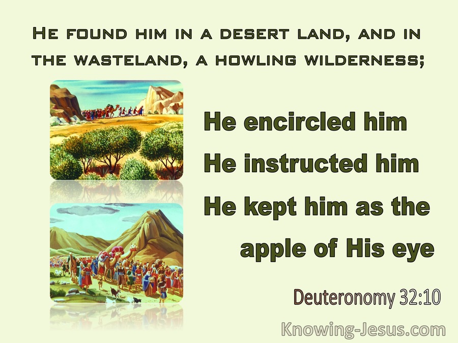 耶和华遇见他在旷野荒凉野兽吼叫之地,就环绕他、看顾他,保护他如同保护眼中的瞳人。(申32:10)