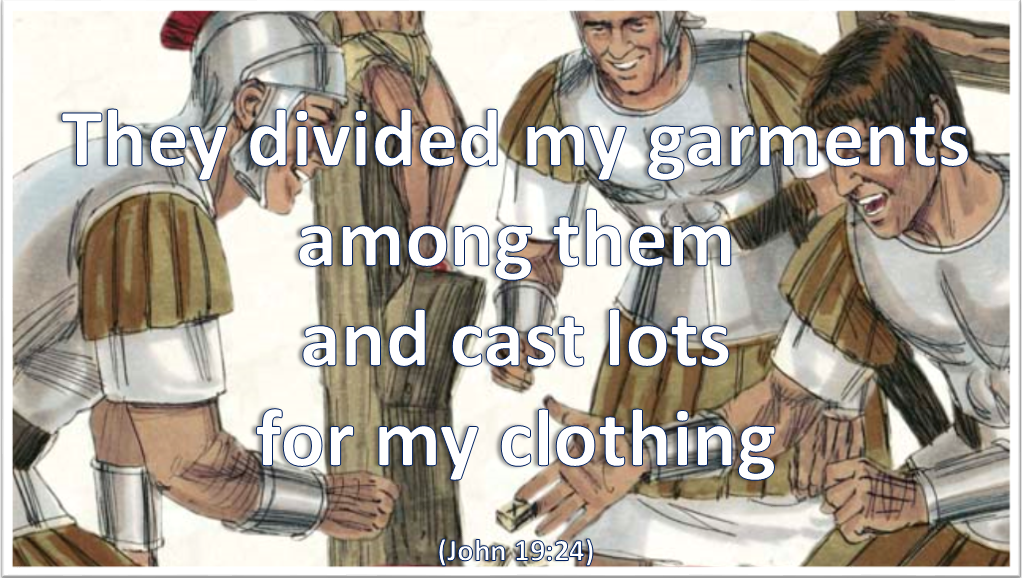 “他们分我的外衣,为我的里衣拈阄。”(18节)无知罗马兵丁的残酷嘲弄,恰好应验了早在一千年前的预言。