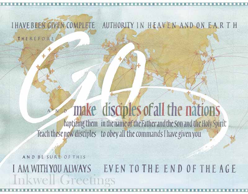 “所以,你们要去,使万民作我的门徒,奉父、子、圣灵的名给他们施洗。凡我所吩咐你们的,都教训他们遵守,我就常与你们同在,直到世界的末了。”(马太福音28:19–20)