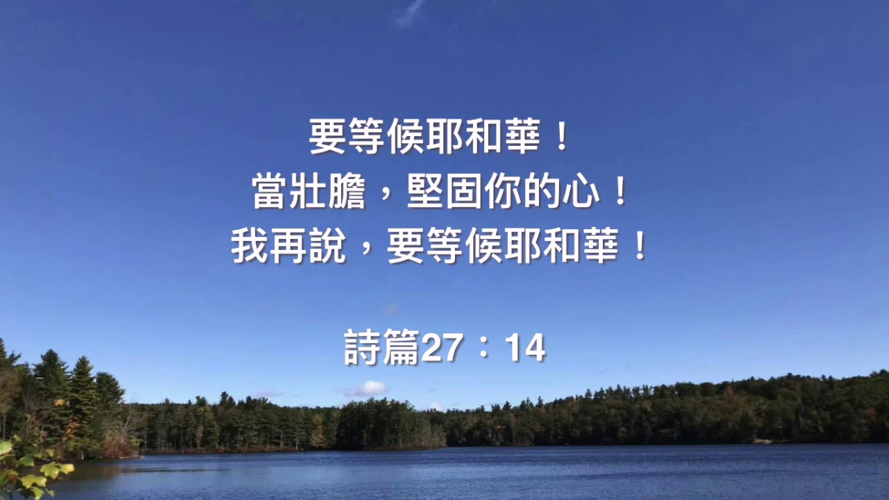 今日经文:“要等候耶和华,当壮胆,坚固你的心;我再说,要等候耶和华。”(诗二十七14)