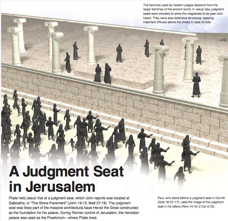 “彼拉多听见这话,就带耶稣出来,到了一个地方,名叫铺华石处,希伯来话叫厄巴大,就在那里坐堂。”(约19:13)