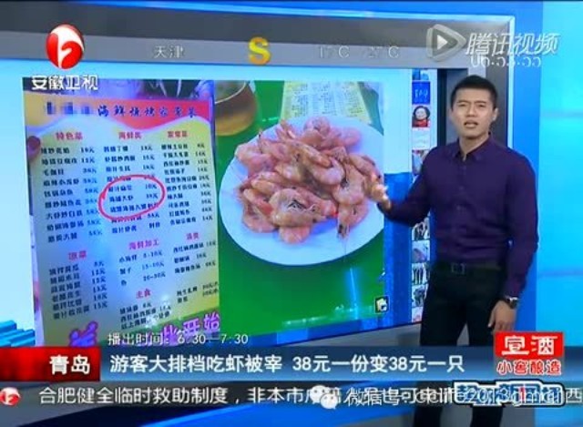最近两天,“青岛大虾”成了一个特殊的名词:国庆节期间,青岛“善德烧烤店”大虾标价38元,结账时说38元是一只大虾的价格,一盘大虾要付上千元。